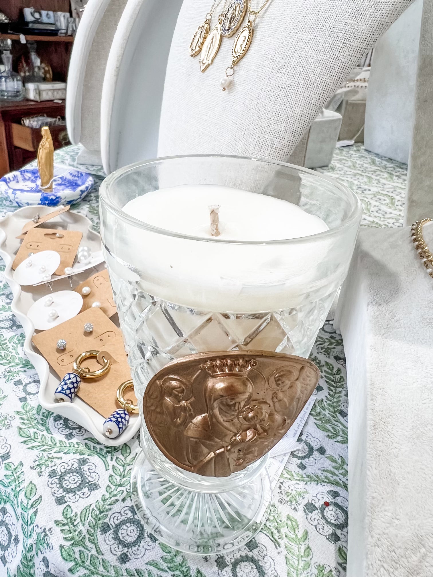 Blessed Mother with Baby Jesus surrounded by angels intaglio String of Pearls