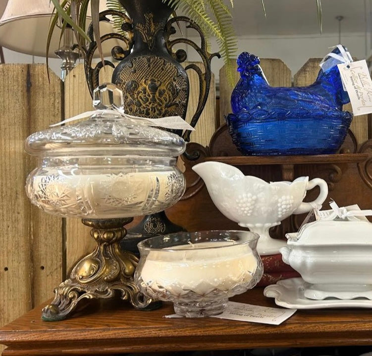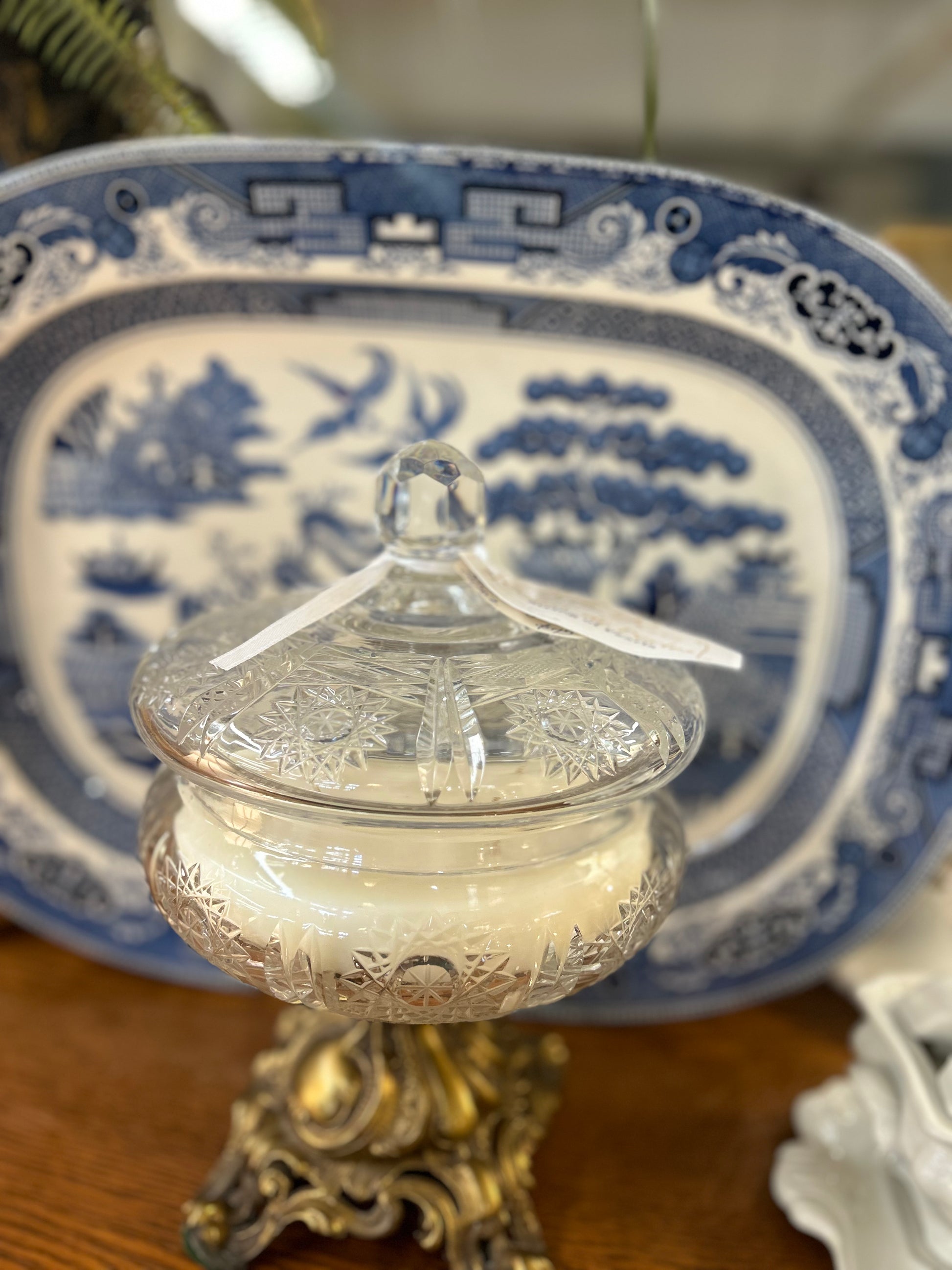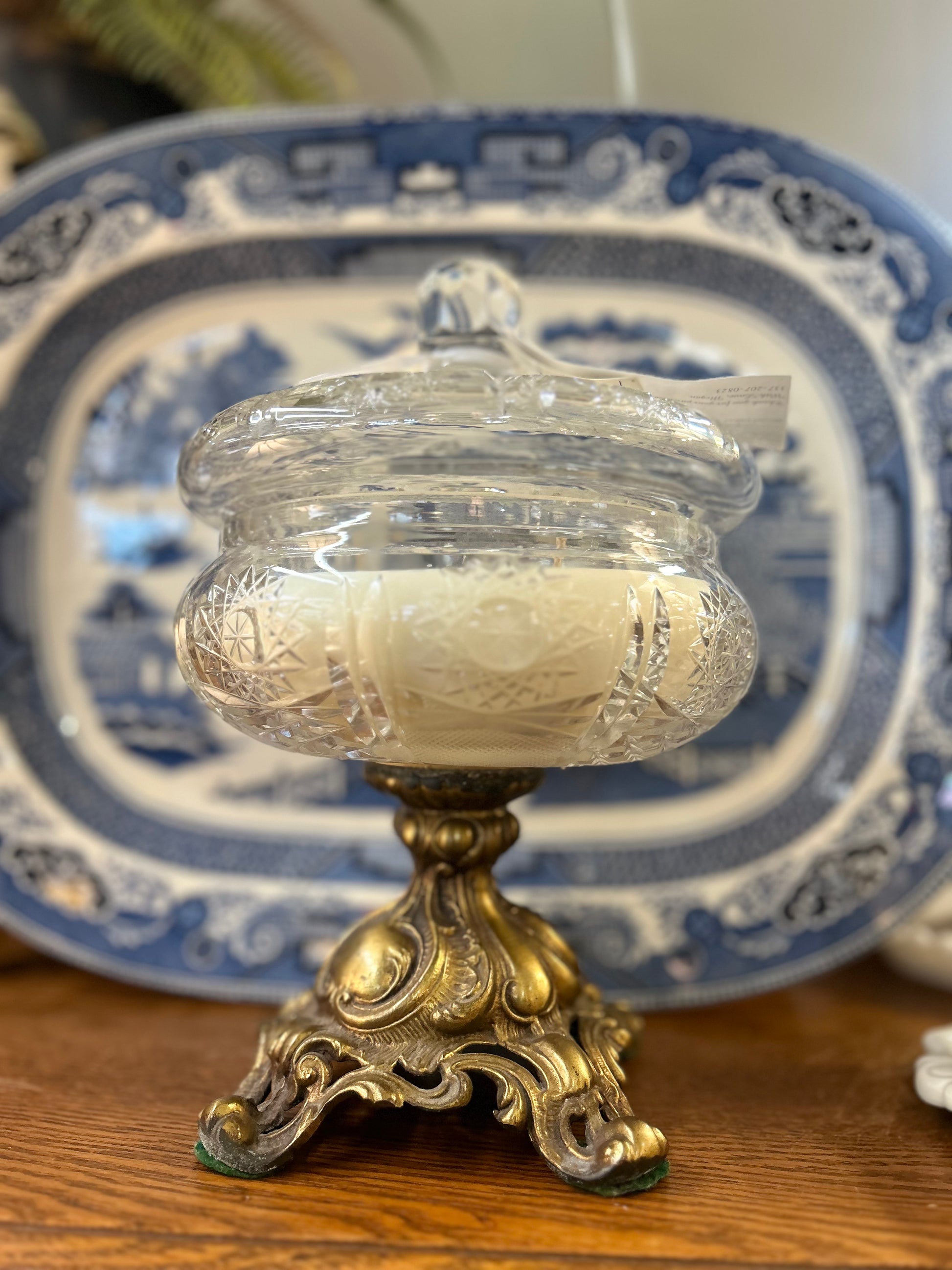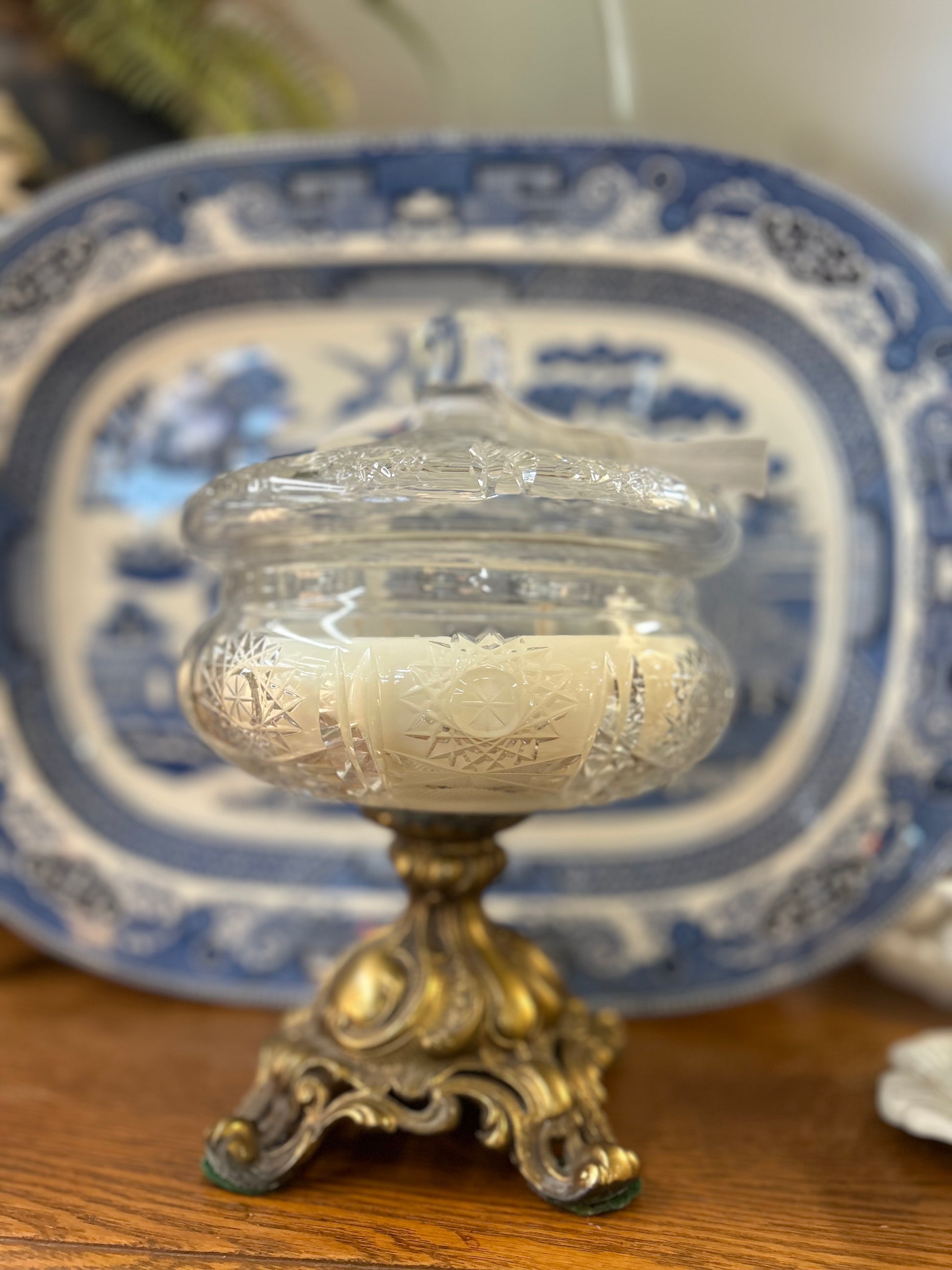 Vintage crystal Hollywood Regency candy dish with lid 20 oz